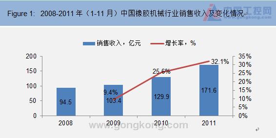 2011年,汽車(chē)行業(yè)的不景氣在一定程度上影響了橡膠機(jī)械行業(yè)的發(fā)展,但從銷(xiāo)售收入上來(lái)看,該市場(chǎng)仍實(shí)現(xiàn)了30%以上的增長(zhǎng)。這主要緣于“十一五”汽車(chē)工業(yè)快速發(fā)展積累的巨大汽車(chē)保有量對(duì)原配及替換胎市場(chǎng)的巨大需求。2011年橡膠機(jī)械銷(xiāo)售利潤(rùn)率探底回升,利潤(rùn)向好也增加了企業(yè)發(fā)展后勁,企業(yè)資產(chǎn)總額顯著提高。
