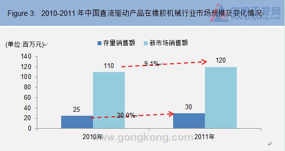 市場(chǎng)規(guī)模:2011年直流驅(qū)動(dòng)產(chǎn)品在該領(lǐng)域中市場(chǎng)規(guī)模為1.5億元,與2010年同期相比增長(zhǎng)11.1%。存量市場(chǎng)增長(zhǎng)幅度高于平均增長(zhǎng)率達(dá)到20.0%。